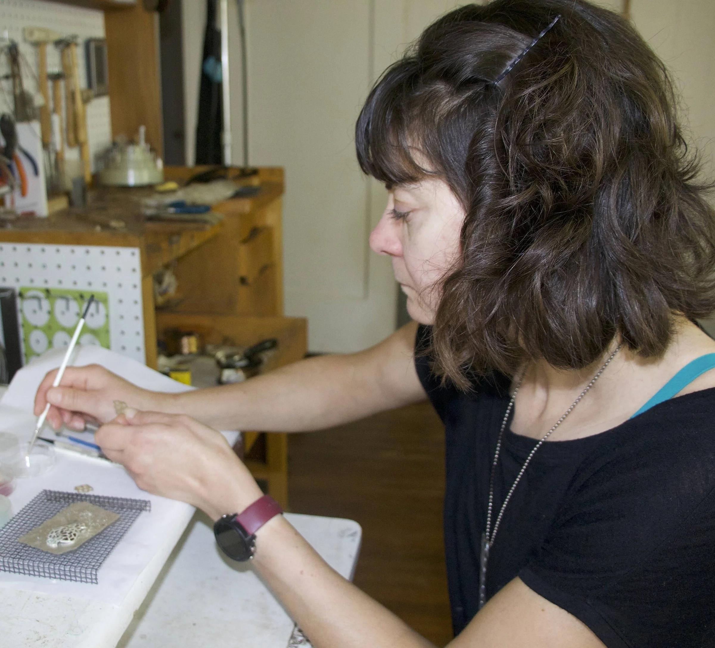 She currently works as the Metalsmithing & Jewelry Technician at the University of North Texas. Her work has been exhibited regionally and nationally, and is in the Enamel Foundation’s permanent collection, the Arkansas Museum of Fine Art, the Crocker Museum and the Yale University Art Gallery.