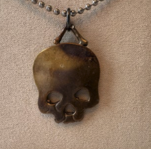 Handcrafted skull pendant made of Cast bronze, and stainless steel ball chain.